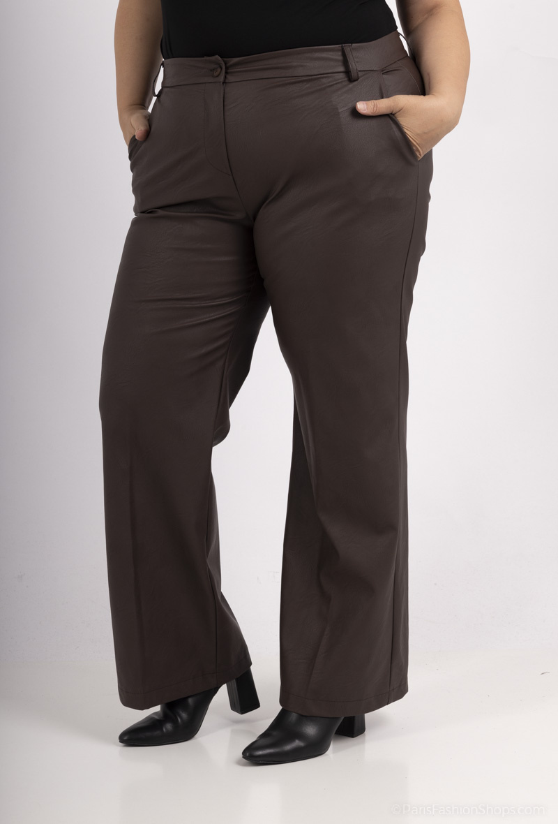 Plussize Kunstlederhose im Wide-Leg-Schnitt