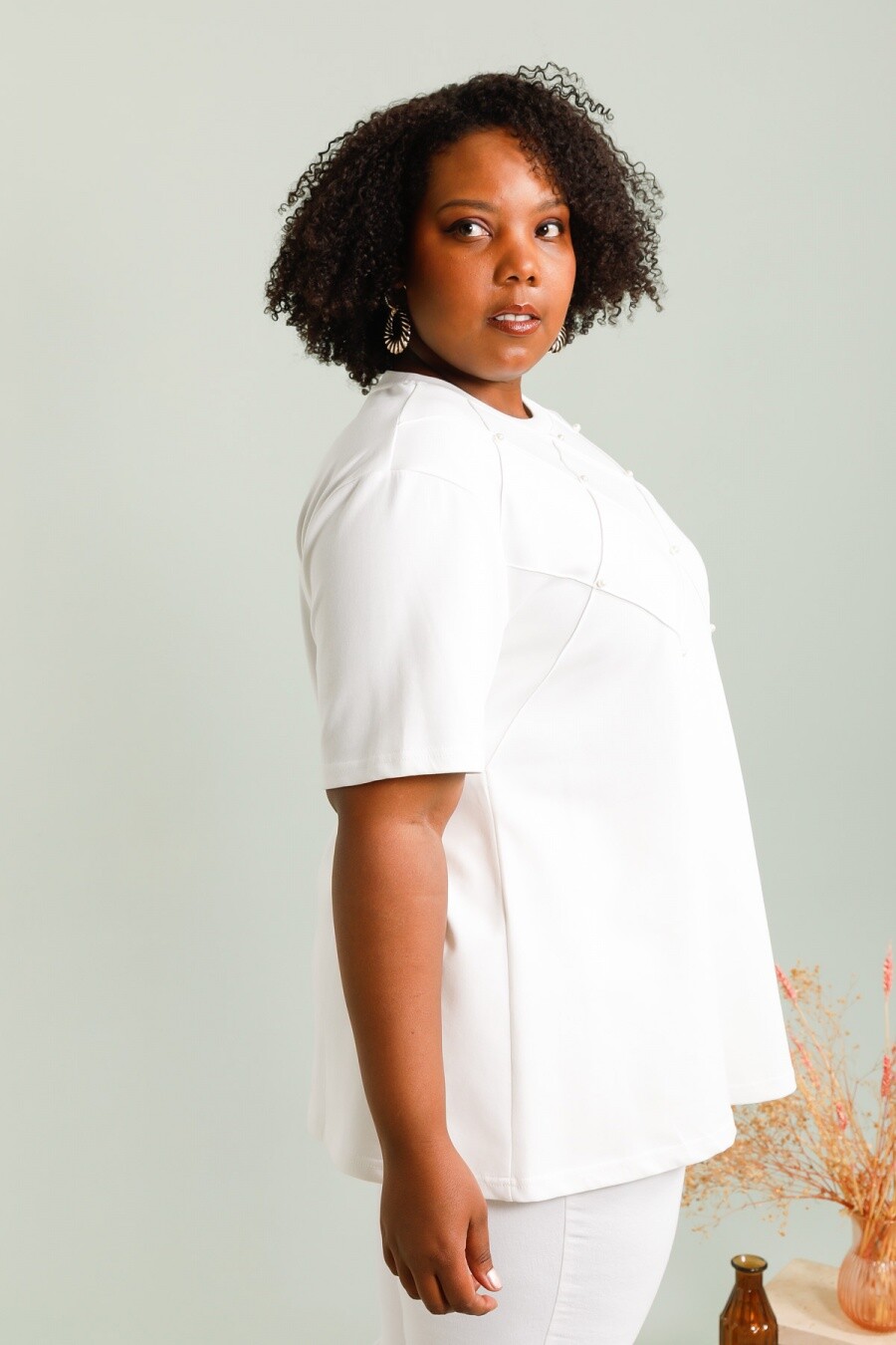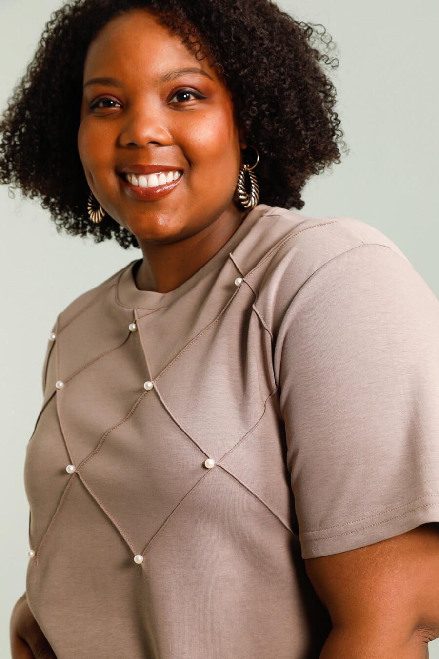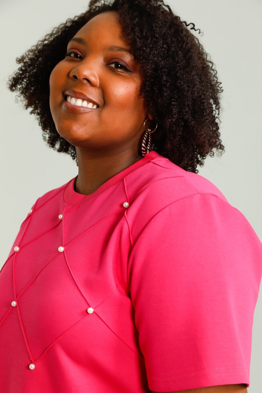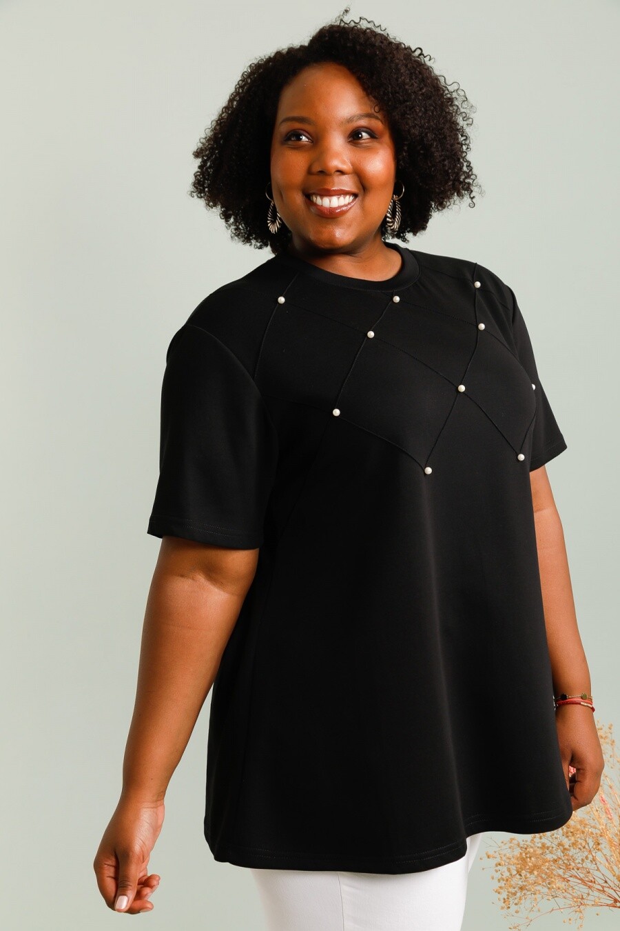 Das Plussize T-Shirt mit Perlen-Details ist ein stilvolles Statement-Piece, das Komfort und Eleganz perfekt vereint. Dieses besondere T-Shirt wurde speziell für Plussize entwickelt und ist der ideale Begleiter für alle, die Wert auf modische Details und hohen Tragekomfort legen.