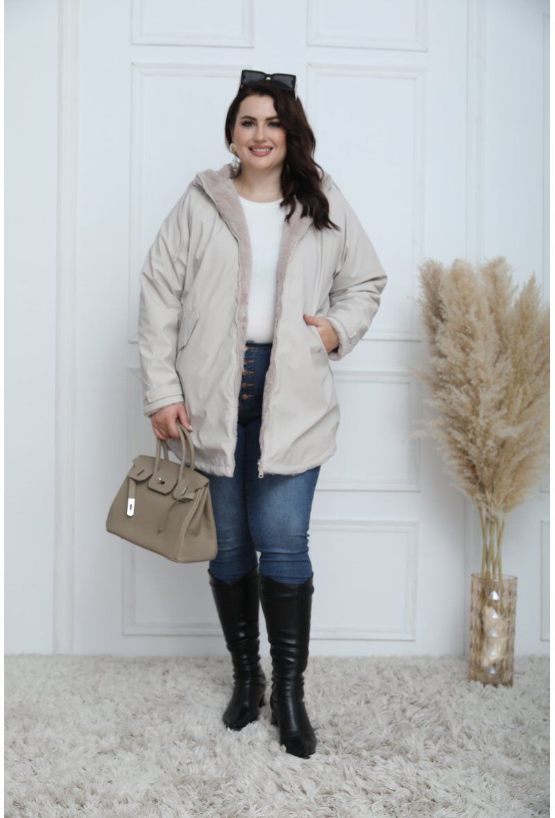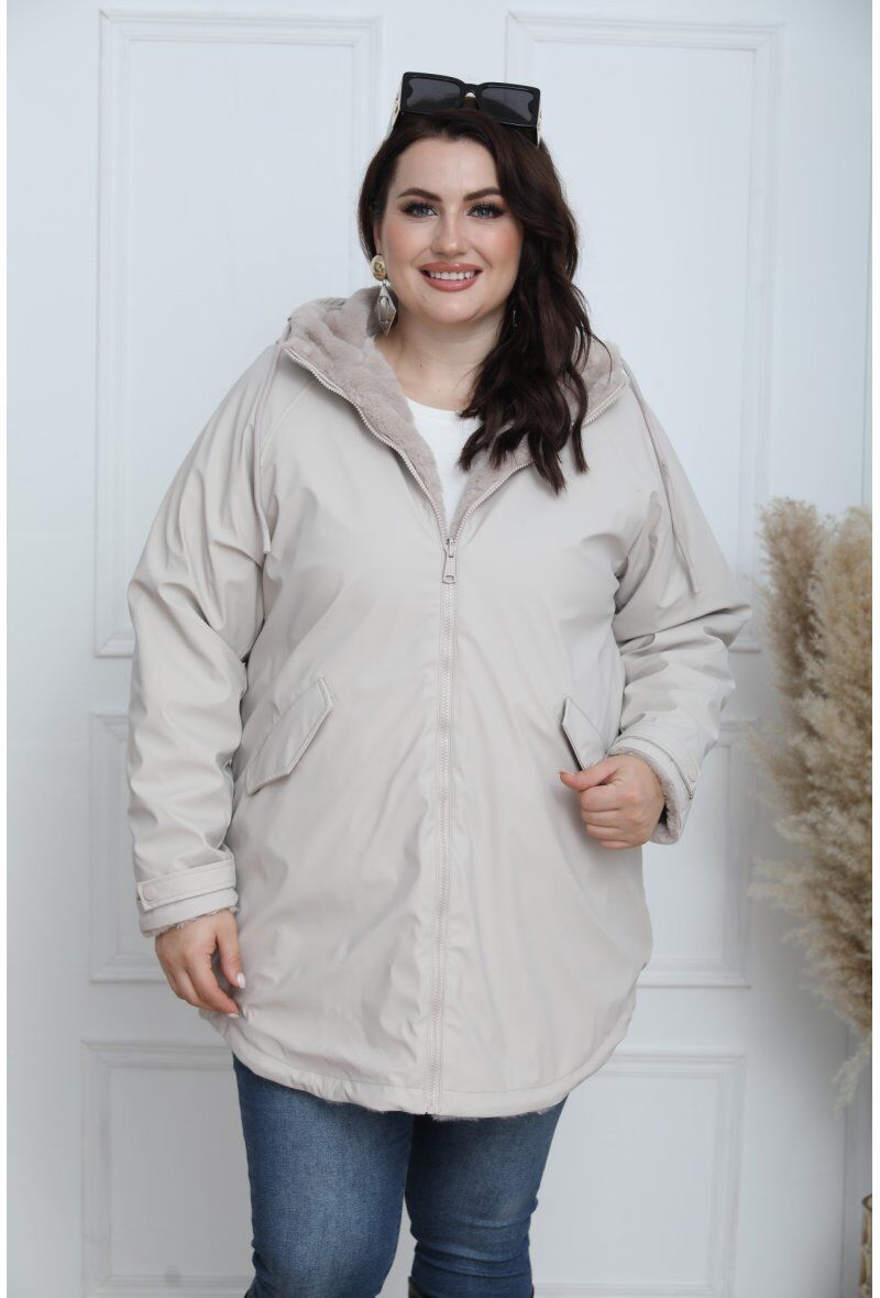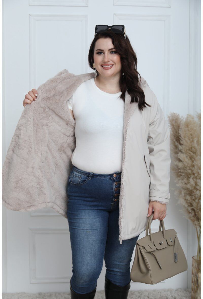 Plussize Wendeparka mit Teddyfell und Kapuze
